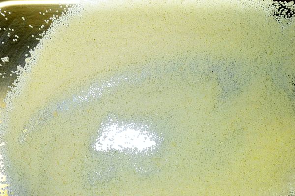 Microspheres that are made with the BRACE Microsphere processes do not have these problems. With finely tunable particle sizes in the accessible range of about 0,1 to several millimeter, they are above the common dust explosive criteria (<0,06 mm for organic material). Due to their shape and extremely narrow size distribution, they are perfectly well suited for transport and dosing processes, as they are flowing like liquids. Last but not least, their spherical form provides very small contact surfaces, so even during long storage no or only very little baking can be seen – which also breaks up easily when movement is applied, e.g. by manual movement of the bags.
